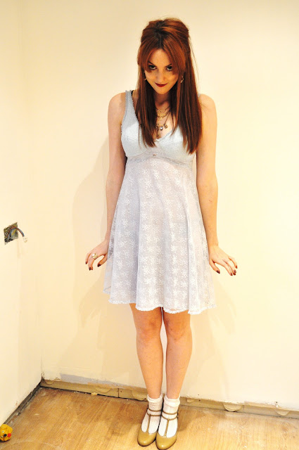 With Bee's expert help (that girl should be a stylist!) I got my hands on an adorable pale blue baby doll dress from the sixties for £15, a lovely cream slip dress for £20 and a cute-as-a-button blue jumper for £15. There was loads more I could have bought, but that will have to wait till after my next pay day!
